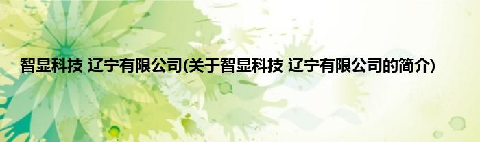本文关于智显科技 辽宁有限公司的简介就讲解完毕,希望对大家有所帮助。
