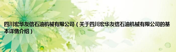 本文关于四川宏华友信石油机械有限公司的基本详情介绍就讲解完毕,希望对大家有所帮助。