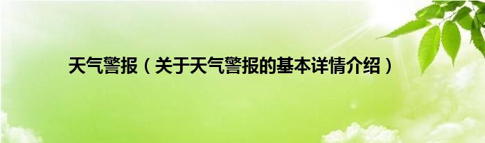 本文关于天气警报的基本详情介绍就讲解完毕,希望对大家有所帮助。