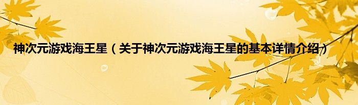 本文关于神次元游戏海王星的基本详情介绍就讲解完毕,希望对大家有所帮助。