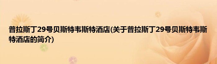 本文关于普拉斯丁29号贝斯特韦斯特酒店的简介就讲解完毕,希望对大家有所帮助。