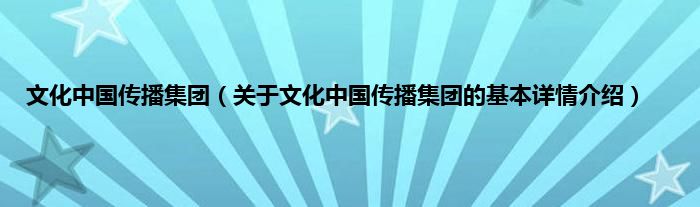 本文关于文化中国传播集团的基本详情介绍就讲解完毕,希望对大家有所帮助。