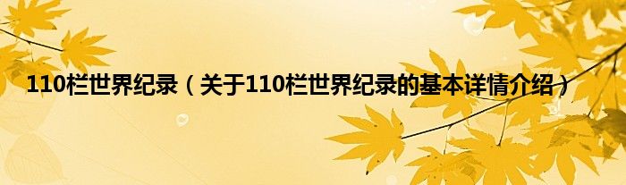 本文关于110栏世界纪录的基本详情介绍就讲解完毕,希望对大家有所帮助。