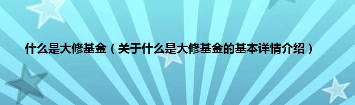 大家好我是小蝌蚪,什么是大修基金,关于什么是大修基金的基本详情介绍很多人还不知道,那么现在让我们一起来看看吧!