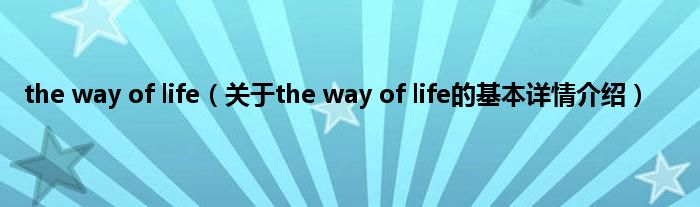 the way of life(关于the way of life的基本详情介绍)