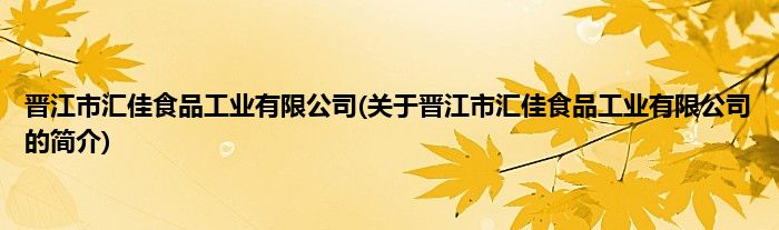 本文关于晋江市汇佳食品工业有限公司的简介就讲解完毕,希望对大家有所帮助。
