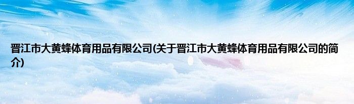 大家好,晋江市大黄蜂体育用品有限公司,关于晋江市大黄蜂体育用品有限公司的简介很多人还不知道,现在让我们一起来看看吧!