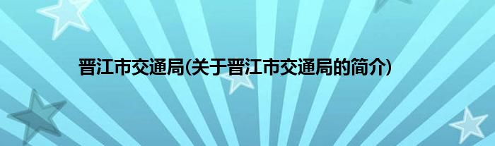 本文关于晋江市交通局的简介就讲解完毕,希望对大家有所帮助。