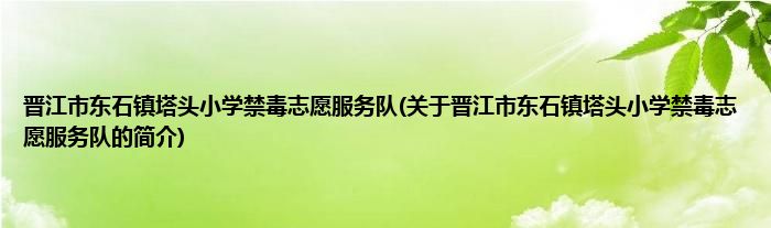 本文关于晋江市东石镇塔头小学禁毒志愿服务队的简介就讲解完毕,希望对大家有所帮助。