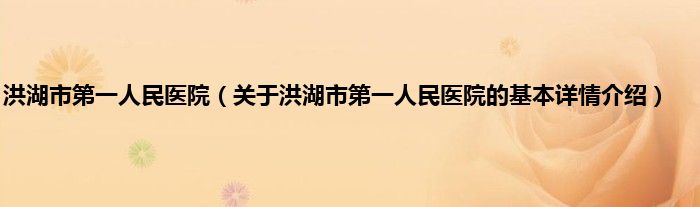 本文关于洪湖市第一人民医院的基本详情介绍就讲解完毕,希望对大家有所帮助。
