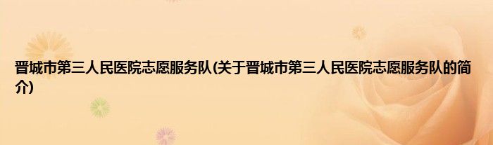 大家好,晋城市第三人民医院志愿服务队,关于晋城市第三人民医院志愿服务队的简介很多人还不知道,现在让我们一起来看看吧!