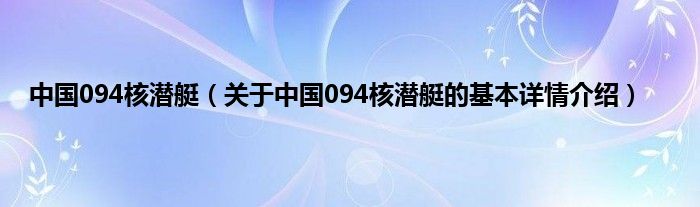 本文关于中国094核潜艇的基本详情介绍就讲解完毕,希望对大家有所帮助。