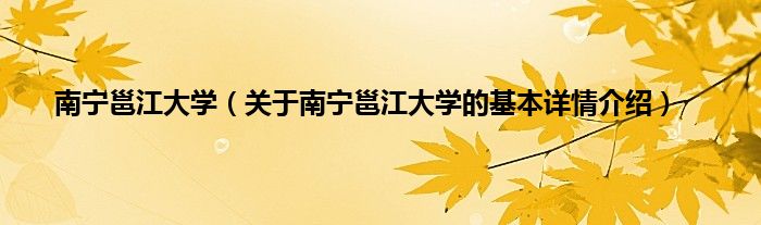 本文关于南宁邕江大学的基本详情介绍就讲解完毕,希望对大家有所帮助。