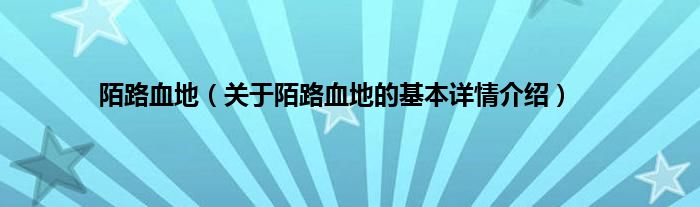 本文关于陌路血地的基本详情介绍就讲解完毕,希望对大家有所帮助。