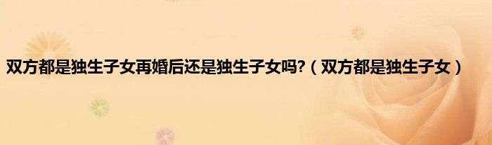 以上就是【双方都是独生子女再婚后还是独生子女吗?,双方都是独生子女】相关内容。