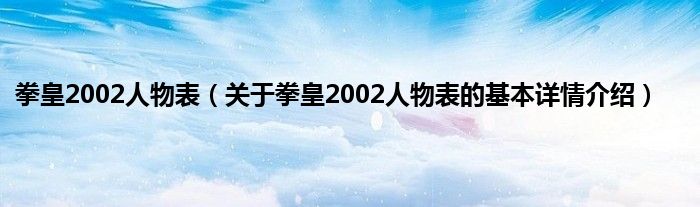 本文关于拳皇2002人物表的基本详情介绍就讲解完毕,希望对大家有所帮助。