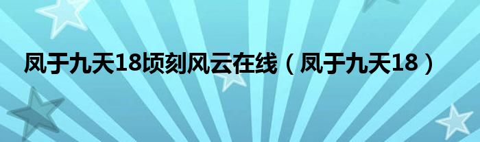 大家好,小问来为大家解答以上问题。凤于九天18顷刻风云在线,凤于九天18这个很多人还不知道,现在让我们一起来看看吧!