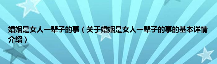 本文关于婚姻是女人一辈子的事的基本详情介绍就讲解完毕,希望对大家有所帮助。