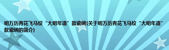 明万历青花飞马纹“大明年造”款瓷碗(关于明万历青花飞马纹“大明年造”款瓷碗的简介)