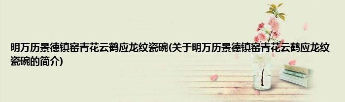 本文关于明万历景德镇窑青花云鹤应龙纹瓷碗的简介就讲解完毕,希望对大家有所帮助。