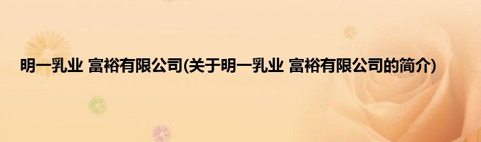 本文关于明一乳业 富裕有限公司的简介就讲解完毕,希望对大家有所帮助。