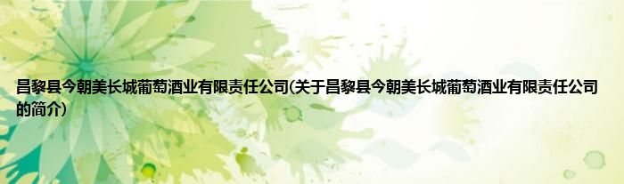 本文关于昌黎县今朝美长城葡萄酒业有限责任公司的简介就讲解完毕,希望对大家有所帮助。