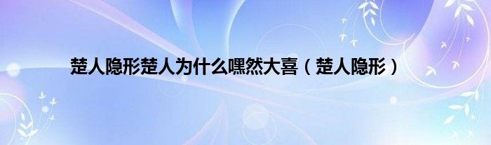 大家好,小问来为大家解答以上问题。楚人隐形楚人为什么嘿然大喜,楚人隐形这个很多人还不知道,现在让我们一起来看看吧!