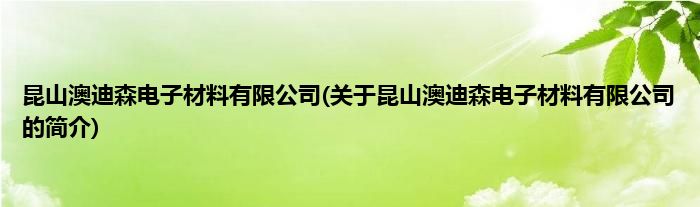 本文关于昆山澳迪森电子材料有限公司的简介就讲解完毕,希望对大家有所帮助。