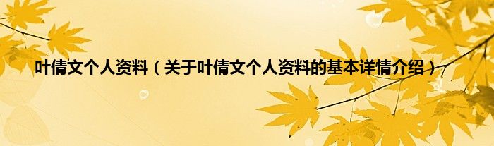 本文关于叶倩文个人资料的基本详情介绍就讲解完毕,希望对大家有所帮助。