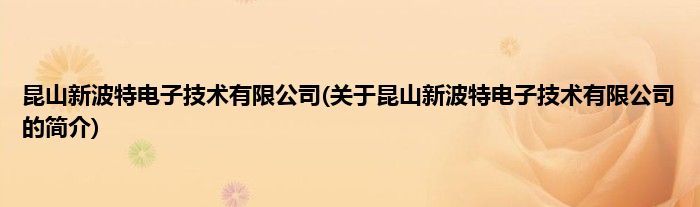 本文关于昆山新波特电子技术有限公司的简介就讲解完毕,希望对大家有所帮助。