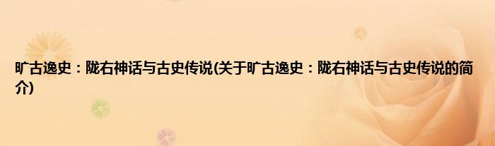 本文关于旷古逸史:陇右神话与古史传说的简介就讲解完毕,希望对大家有所帮助。