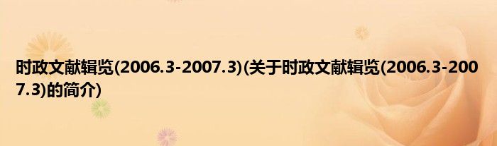 大家好,时政文献辑览,2006.3-2007.3,关于时政文献辑览,2006.3-2007.3的简介很多人还不知道,现在让我们一起来看看吧!