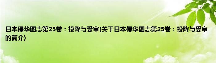 本文关于日本侵华图志第25卷:投降与受审的简介就讲解完毕,希望对大家有所帮助。