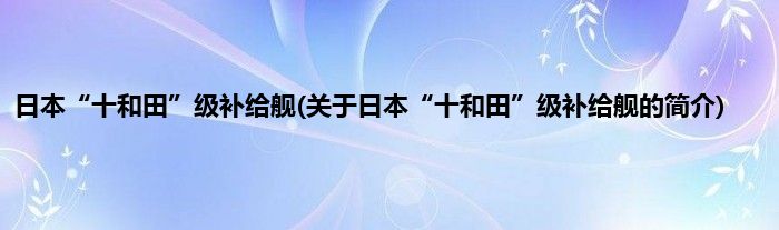 大家好,日本“十和田”级补给舰,关于日本“十和田”级补给舰的简介很多人还不知道,现在让我们一起来看看吧!