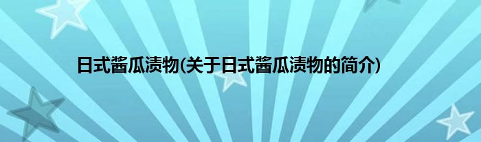 日式酱瓜渍物(关于日式酱瓜渍物的简介)