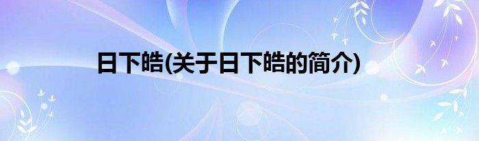 本文关于日下皓的简介就讲解完毕,希望对大家有所帮助。