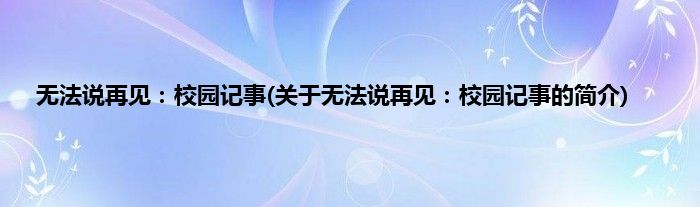 本文关于无法说再见:校园记事的简介就讲解完毕,希望对大家有所帮助。