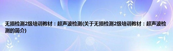 大家好,无损检测2级培训教材:超声波检测,关于无损检测2级培训教材:超声波检测的简介很多人还不知道,现在让我们一起来看看吧!
