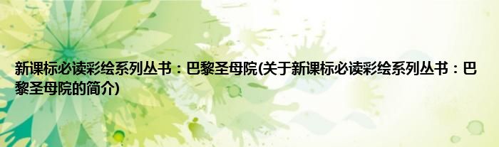 本文关于新课标必读彩绘系列丛书:巴黎圣母院的简介就讲解完毕,希望对大家有所帮助。