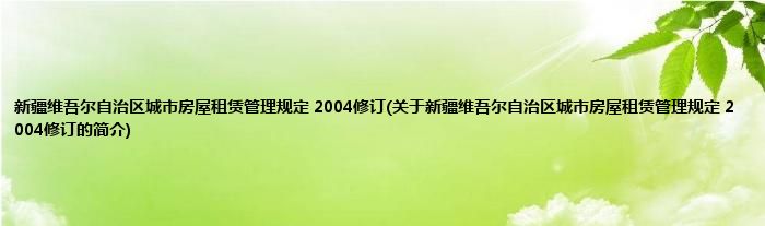 1、 《新疆维吾尔自治区城市房屋租赁管理规定(2004修订)》是2004年6月29日新疆维吾尔自治区人民政府施行的规定。