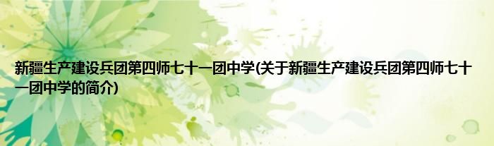 大家好,新疆生产建设兵团第四师七十一团中学,关于新疆生产建设兵团第四师七十一团中学的简介很多人还不知道,现在让我们一起来看看吧!