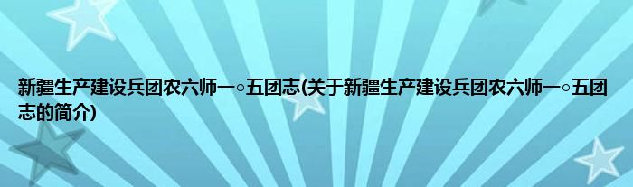 本文关于新疆生产建设兵团农六师一○五团志的简介就讲解完毕,希望对大家有所帮助。