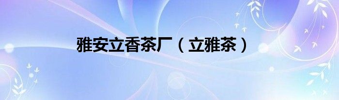 大家好,小问来为大家解答以上问题。雅安立香茶厂,立雅茶这个很多人还不知道,现在让我们一起来看看吧!