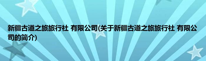 本文关于新疆古道之旅旅行社 有限公司的简介就讲解完毕,希望对大家有所帮助。