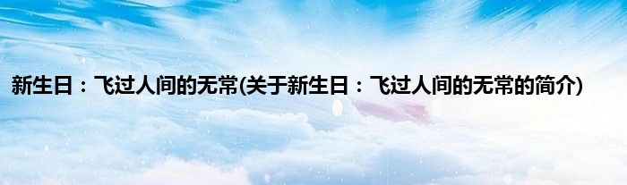 本文关于新生日:飞过人间的无常的简介就讲解完毕,希望对大家有所帮助。