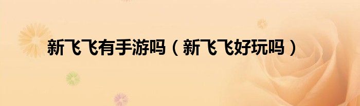 新飞飞有手游吗(新飞飞好玩吗)