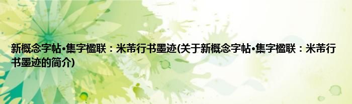 1、 《新概念字帖·集字楹联:米芾行书墨迹》主要内容:初学书法必始于临摹古人碑帖,点划结构风格务求酷似。