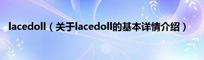 大家好我是小蝌蚪,lacedoll,关于lacedoll的基本详情介绍很多人还不知道,那么现在让我们一起来看看吧!