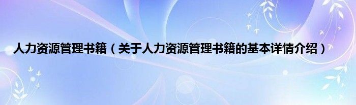 本文关于人力资源管理书籍的基本详情介绍就讲解完毕,希望对大家有所帮助。