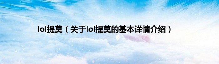 本文关于lol提莫的基本详情介绍就讲解完毕,希望对大家有所帮助。